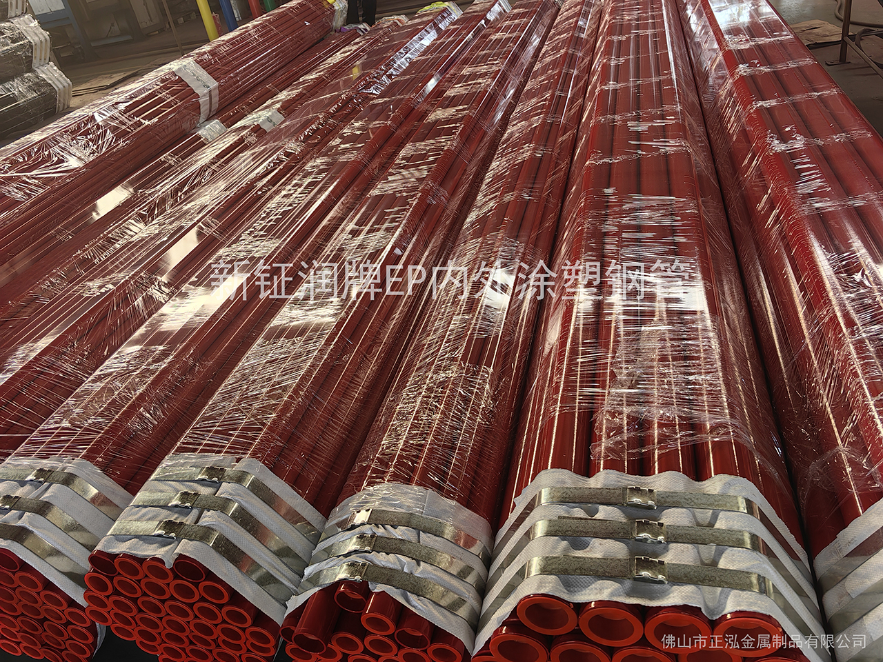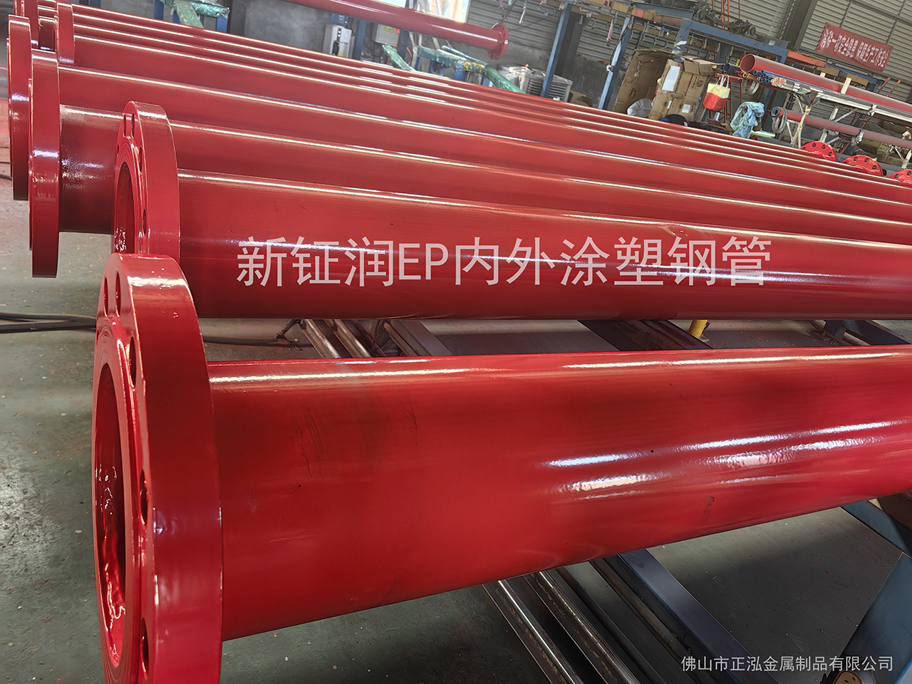 佛山消防內外涂塑鋼管廠家 專業生產新鉦潤消防涂塑復合鋼管(內外涂紅色EP環氧樹脂)消防內外涂塑鋼管廠...